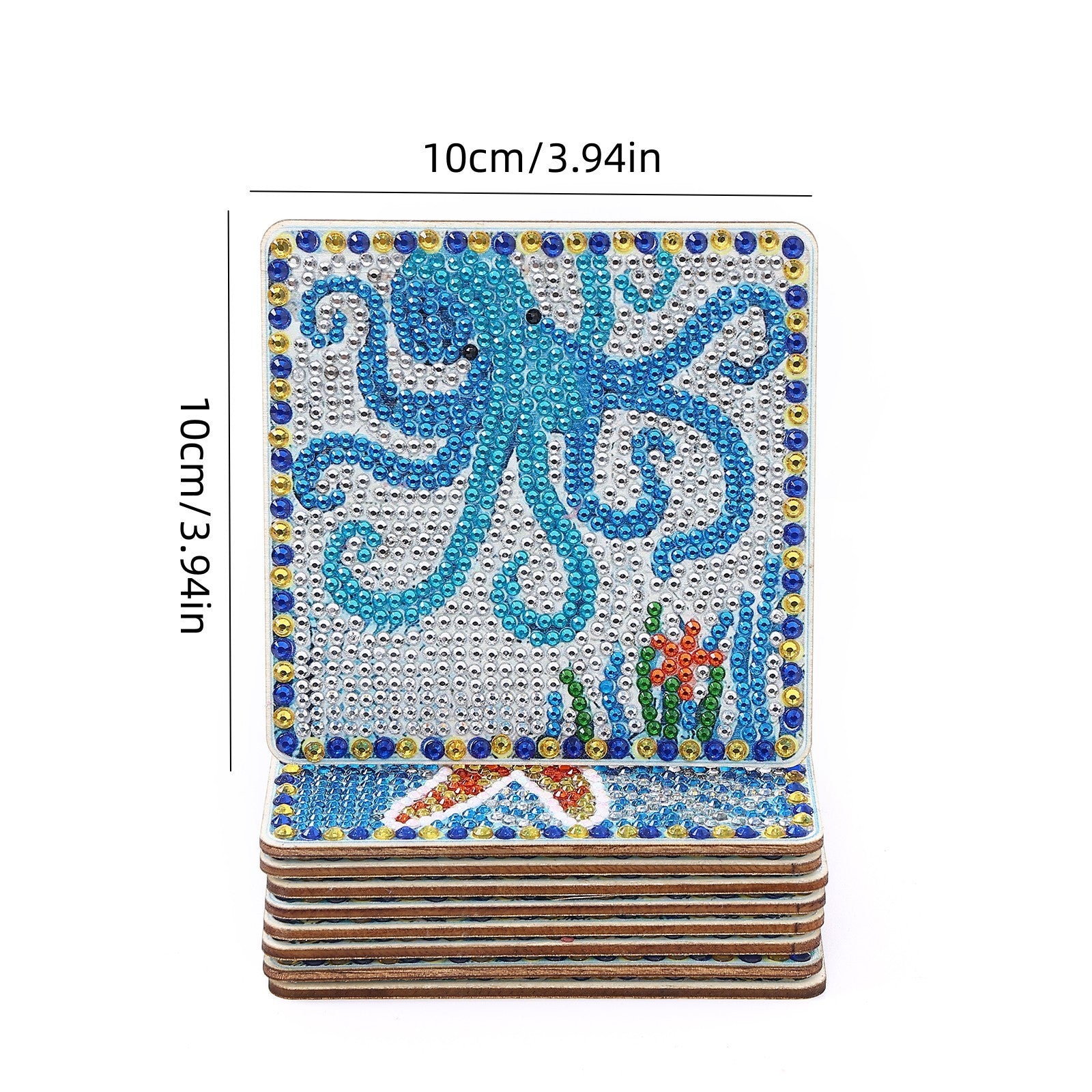 9 Pieces DIY Crystal Glitter Diamond Painted Wooden Art Coaster With Stand