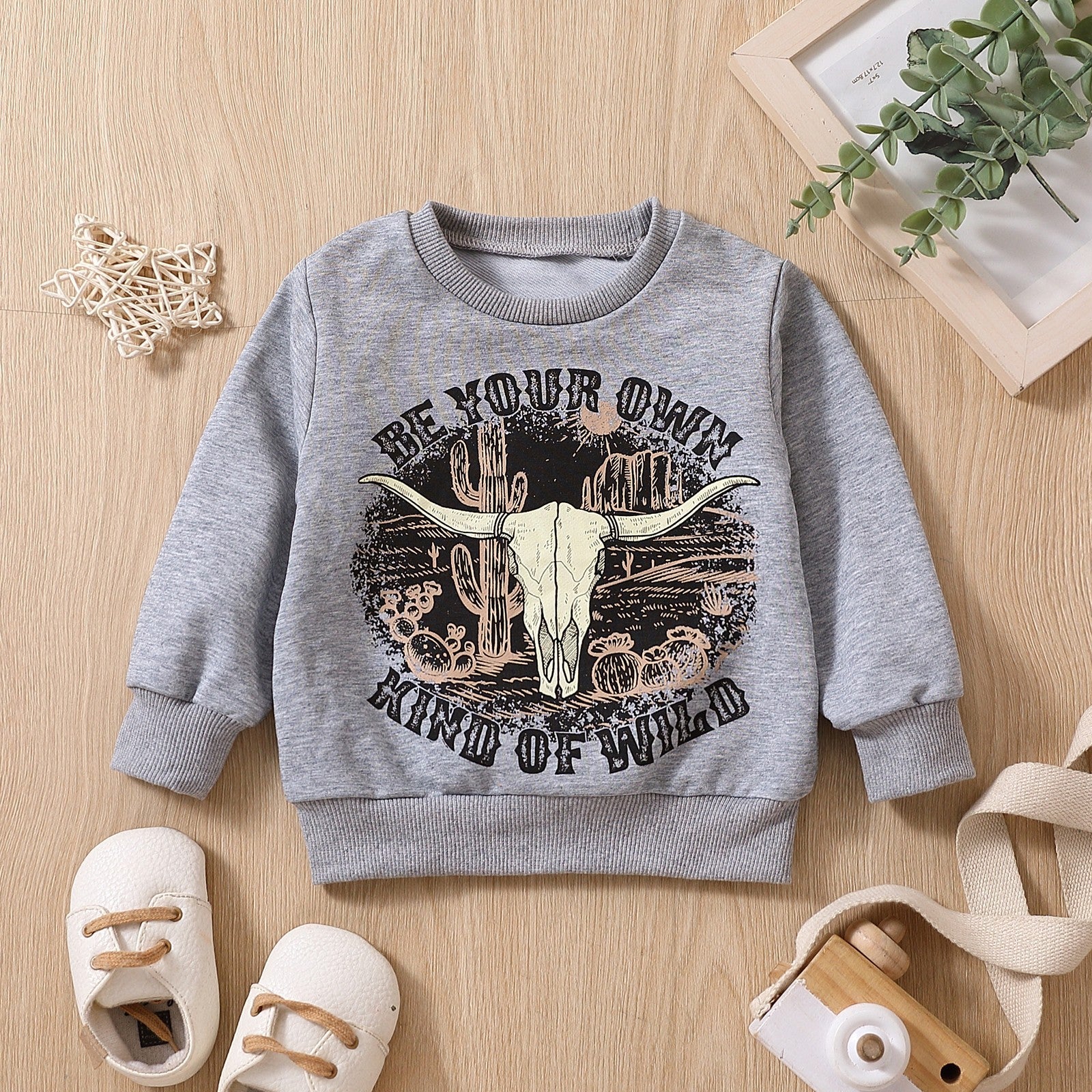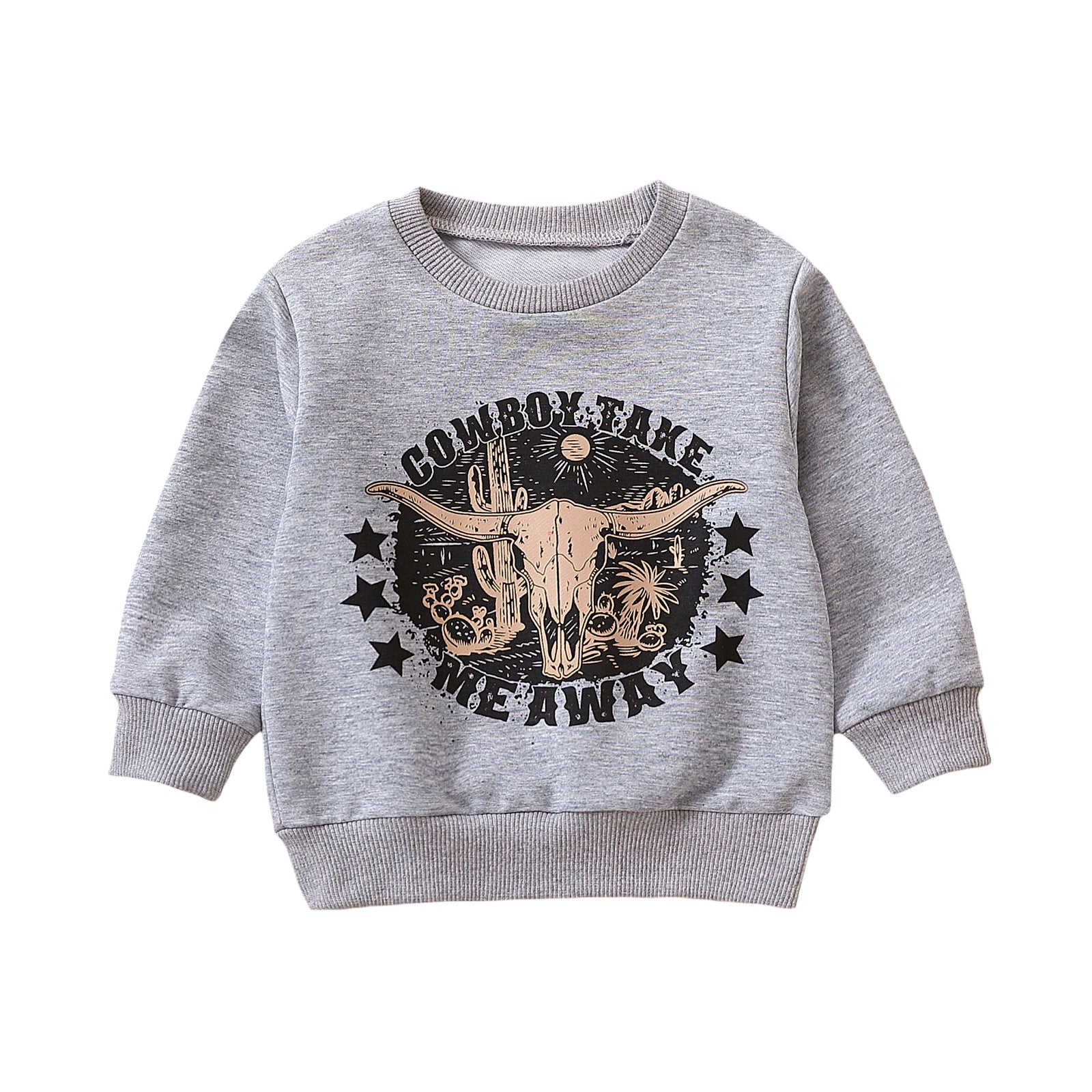Grey Printed Letter Cow Head Children's Sweater