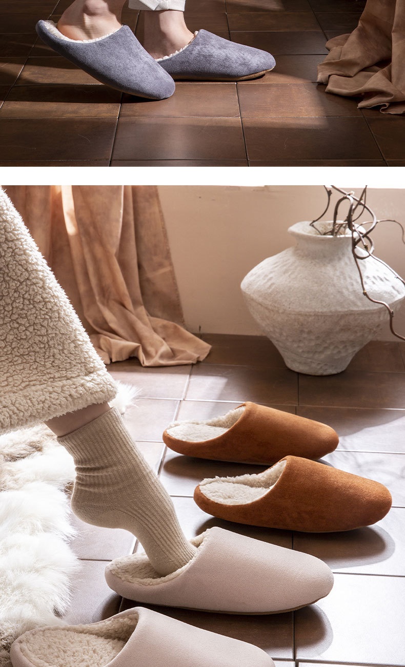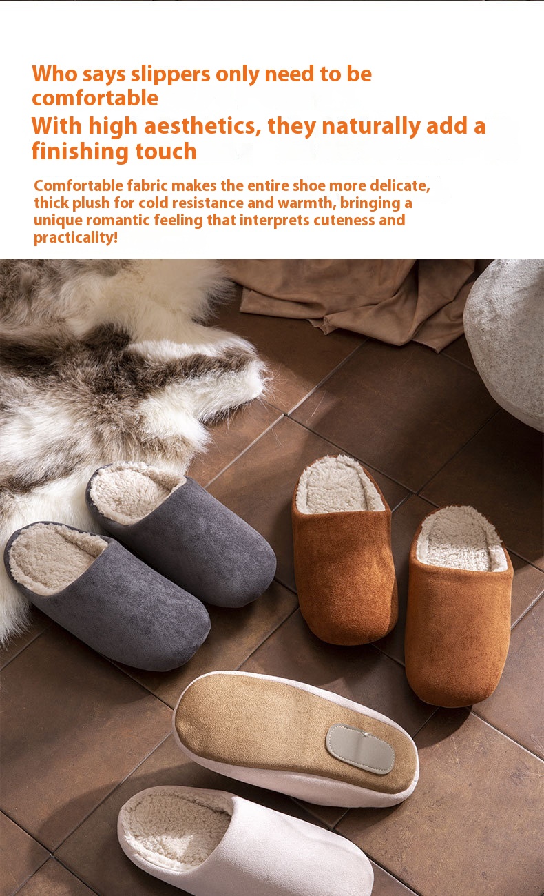 Home Wooden Floor Soft Bottom Deerskin Velvet Bottom Warm Couple Slippers