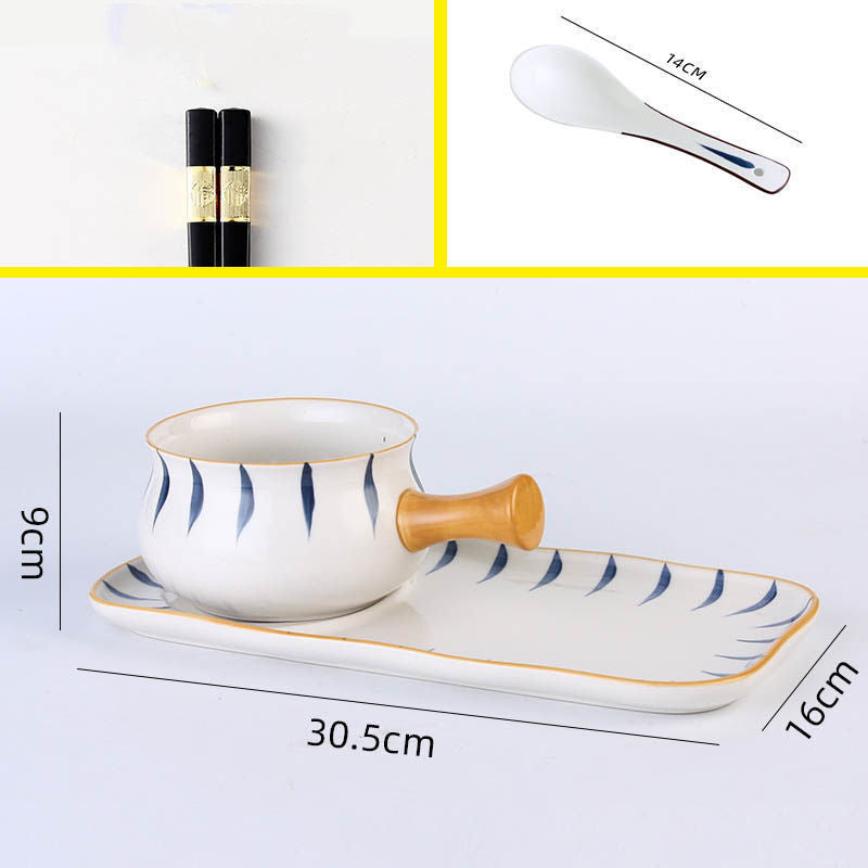 This ceramic plate comes with a matching pot and is a beautiful addition to any kitchen series. Ceramic pots with plates are an excellent addition to any tableware series and can be used in modernist kitchen designs. A deep bowl with a long handle and an unusually shaped starting plate with wavy edges. There is a part dedicated to the bowl, which is included in the combination of plates and bowls made entirely of ceramics. On the tray, the soup can be paired with bread and buns. Curry and bread, as well as desserts such as chocolate cakes, waffles and pancakes with chocolate sauce, can be placed in bowls and plates. Thanks to the charming blue and white pattern combination, this is undoubtedly a very interesting addition to the kitchen series.