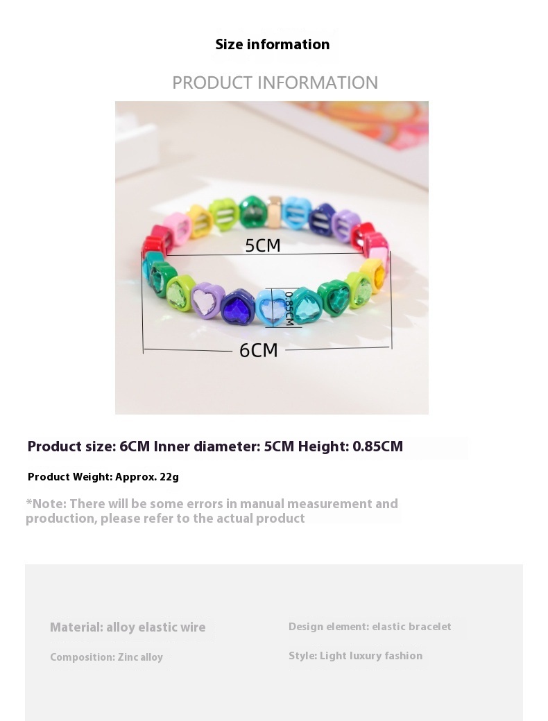 Rainbow Enamel Alloy Heart Bracelet Colorful Fashion Creative Stretch Bracelet
