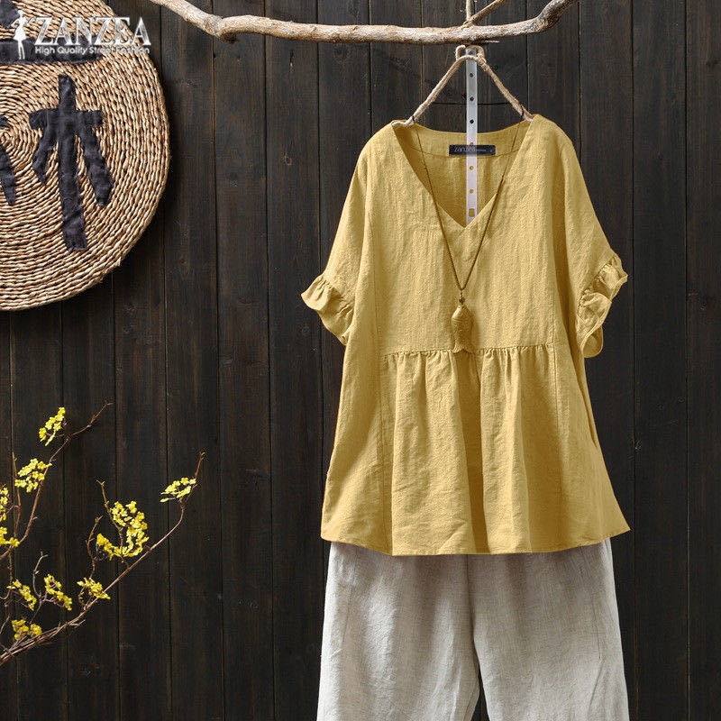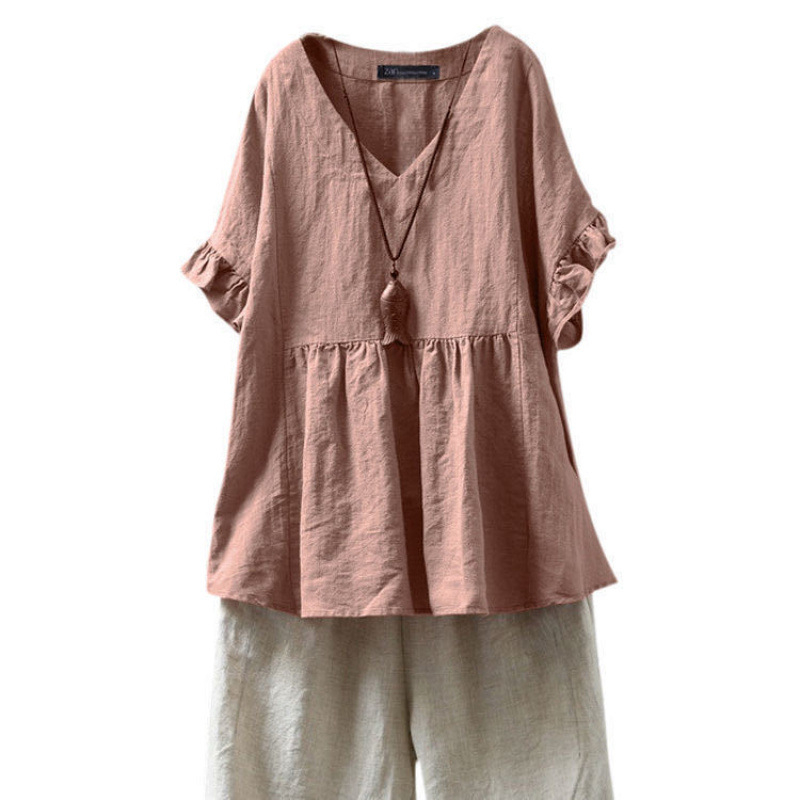 Ruffled Loose Plus Size Top For Ethnic Style Shirt Women